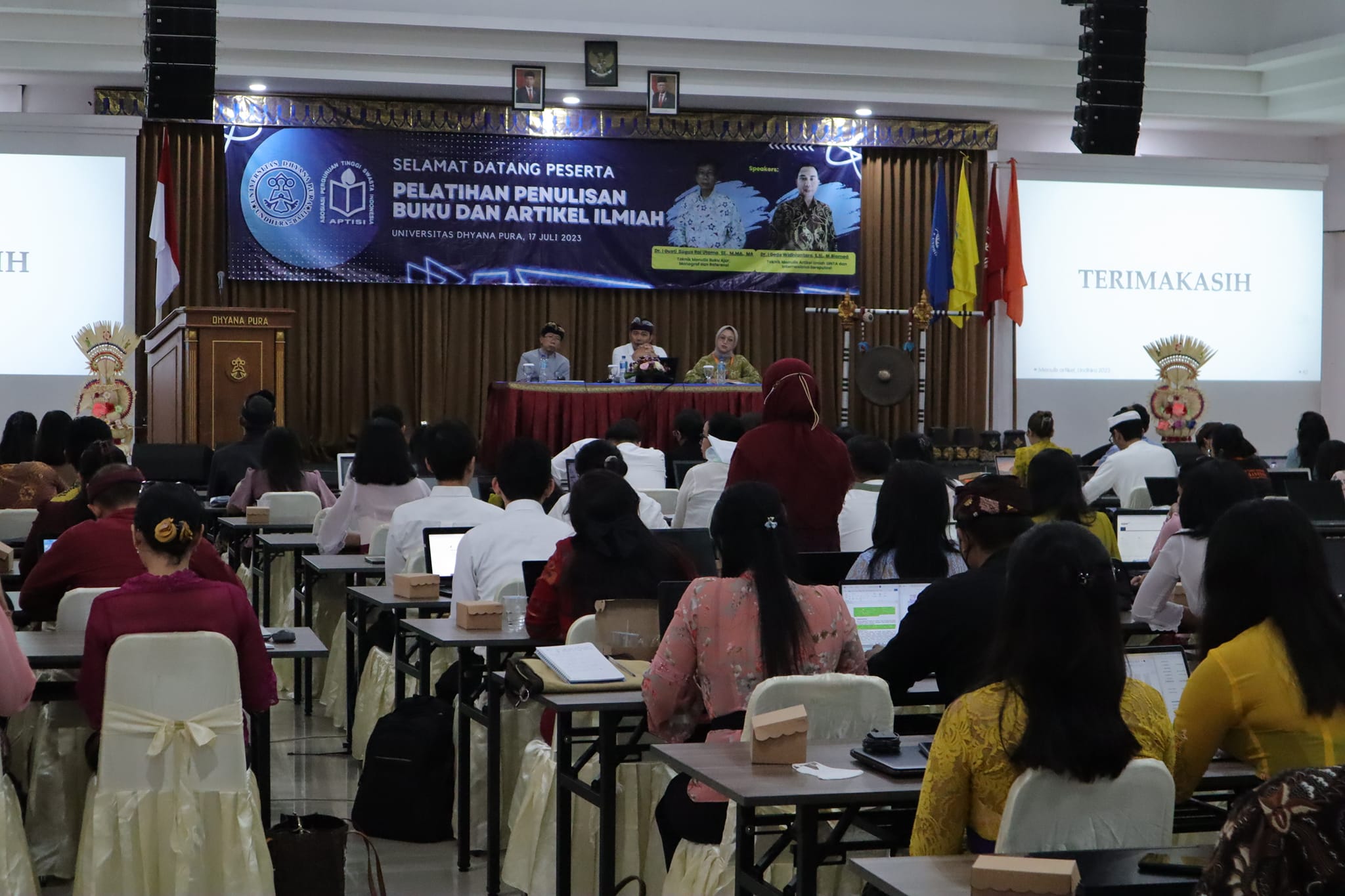 Dosen Prodi Biologi Bioteknologi Universitas Dhyana Pura Dr. I Gede Widhiantara, S.Si.,M.Biomed sebagai narasumber pelatihan penulisan buku dan artikel ilmiah yang diselenggarakan oleh Asosiasi Perguruan Tinggi Swasta Indonesia (APTISI) Wilayah VIII A Bali. Acara ini diikuti oleh 150 orang dosen Perguruan Tinggi Swasta Bali.